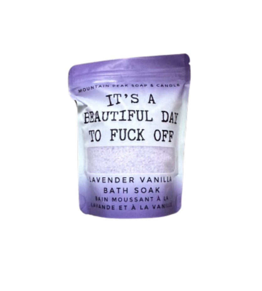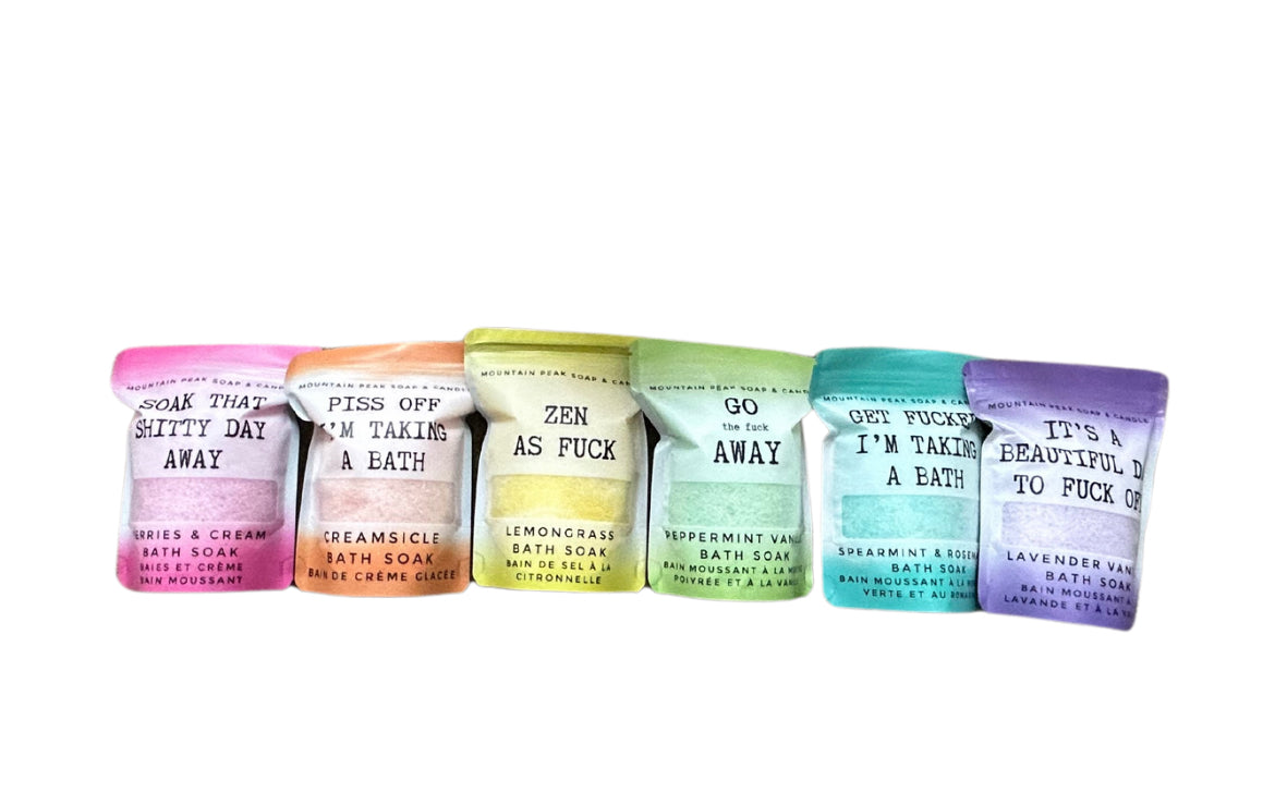 350g. Chill the fuck out with these amazingly accurate and oh so delicious soaks. Contains epsom salts, essential oils, and aroma.