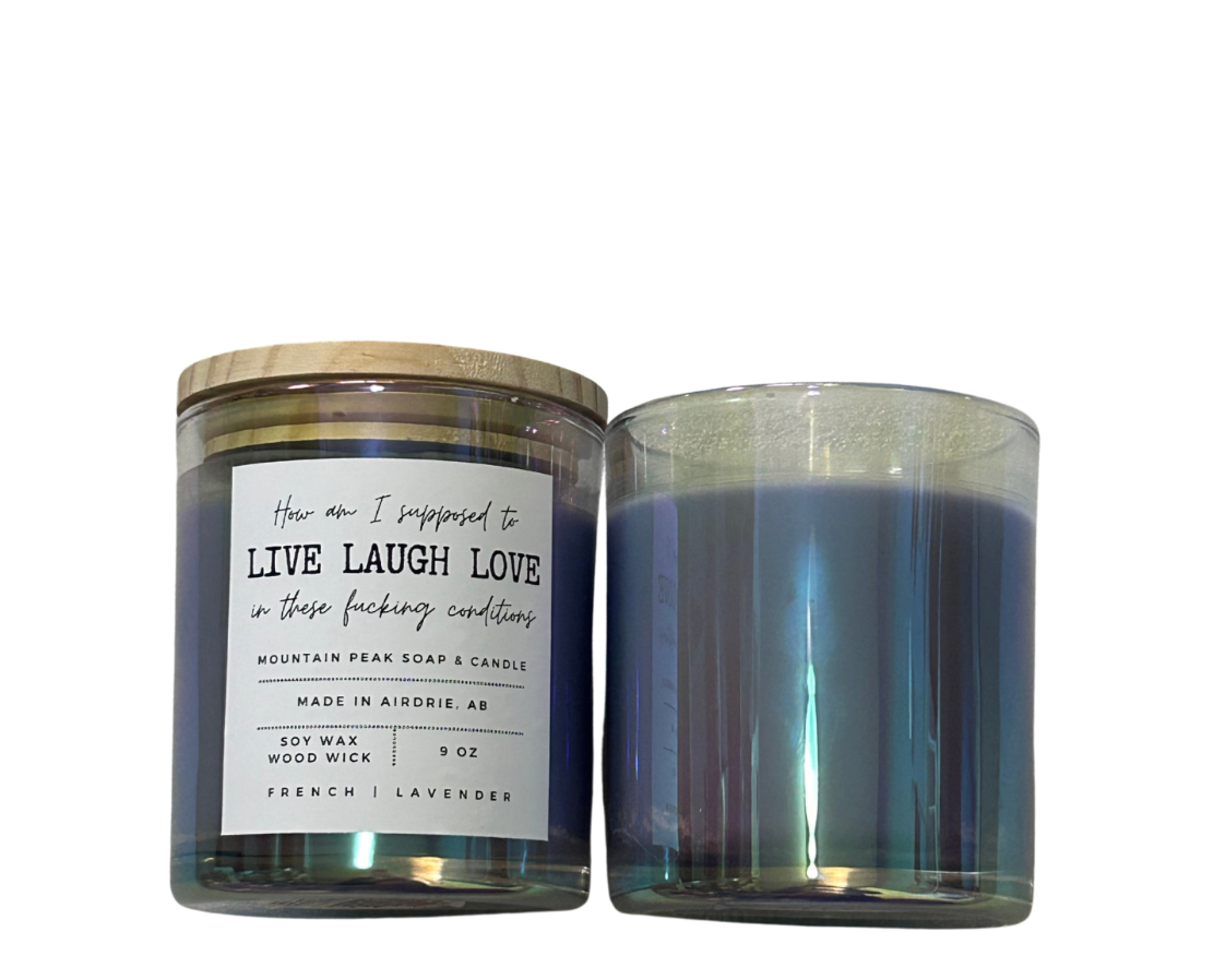 Our Welcome to the Shit Show candle is scented with lavender fragrance and essential oil blend. It comes in a beautiful iridescent jar and wood lid. All of our candles contain wood wicks and soy wax candles. This candle features purple wax.