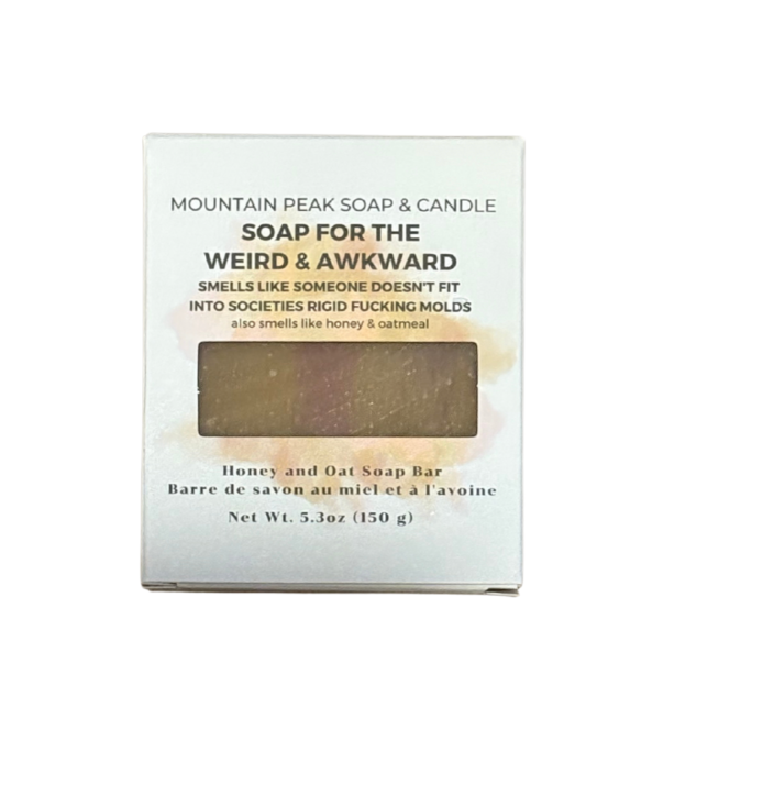 This soap is gritty and contains Water, Sodium Hydroxide, Cocoa Oil, Sustainably sourced Palm Oil, Olive Oil, Canola Oil, Oats, Parfum, and Mica.